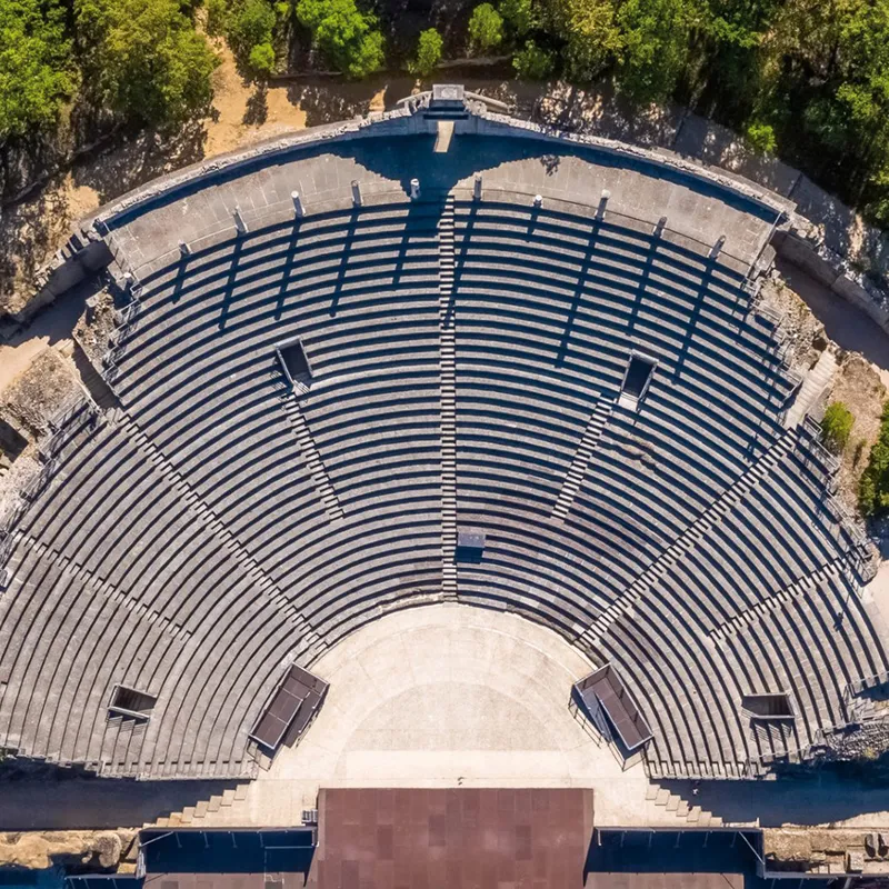 The ancient theatre, still in use today, offers a spectacular setting facing Mont Ventoux, strengthening the connection between historical heritage and Provençal landscapes.